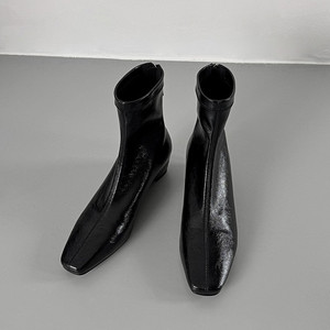 秋冬季新款方头粗中跟短靴时尚简约后拉链时装短筒靴女靴子