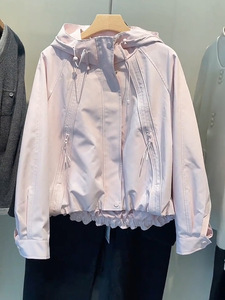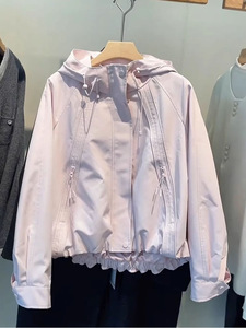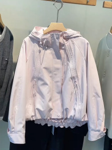 春秋装女款2025年新款超火小香风独特超好看粉色连帽冲锋衣女大码