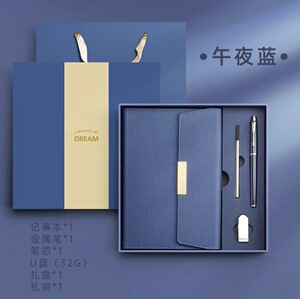午夜蓝+金属笔+笔芯+U盘+套装礼盒