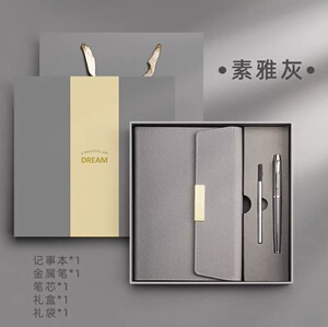 浅灰+金属笔+笔芯+套装礼盒