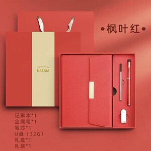 枫叶红+金属笔+笔芯+U盘+套装礼盒