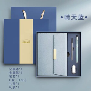晴天蓝+金属笔+笔芯+U盘+套装礼盒