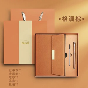 浅棕+金属笔+笔芯+套装礼盒