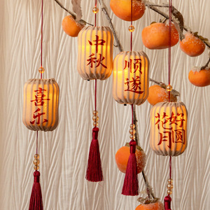 2025新款中秋节发光小宫灯装饰儿童手提古风手工布艺灯笼户外布置