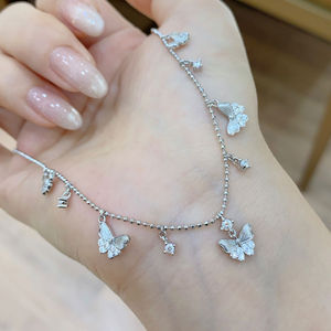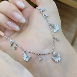 拉丝蝴蝶流苏项链吊坠女S925银镀金百搭时尚轻奢高级感饰品锁骨链