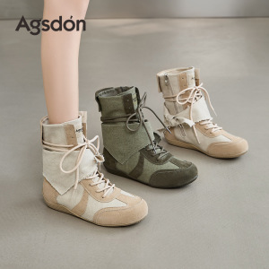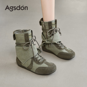 奥古狮登拳击靴女2025新款秋季超火马丁靴高帮西海岸风时尚短靴子
