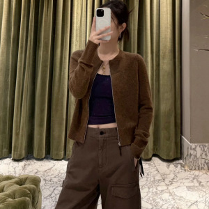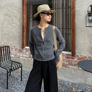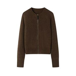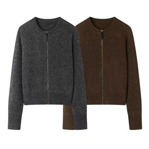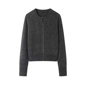 圆领金属拉链短款针织开衫女 2025年秋新品含绵羊毛纯色外套毛衣