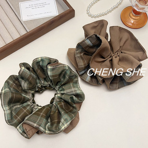 韩系拼色格子双层大肠发圈女高级感丸子头扎头发超大百搭发饰头绳
