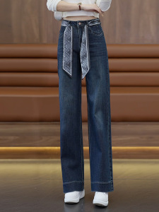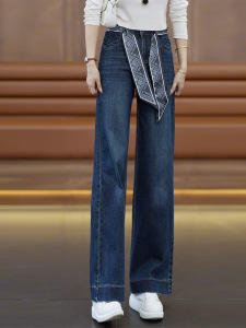 丝巾高腰宽松牛仔窄版阔腿裤2025年新款秋季女时尚百搭休闲直筒裤