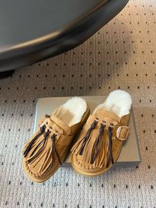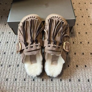欧洲站真皮流苏软底复古厚底包头半拖鞋女秋时尚软底防滑勃肯拖鞋