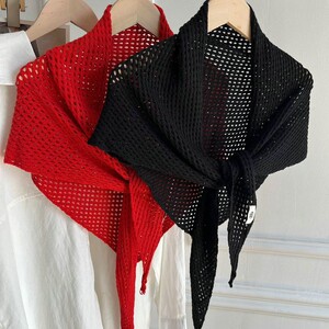 韩版镂空针织三角巾披肩秋冬新款高级感时尚百搭毛线围巾系腰屁帘