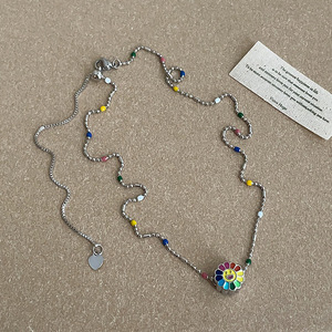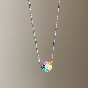 彩色滴油向日葵花朵吊坠项链女甜美清新时尚气质百搭颈链锁骨链