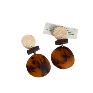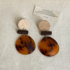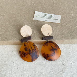 港风复古晕染树脂圆片耳坠女轻奢个性潮流时尚通勤百搭耳环耳饰
