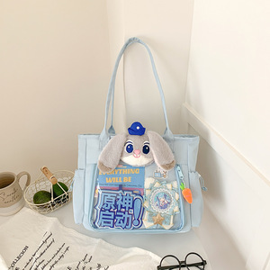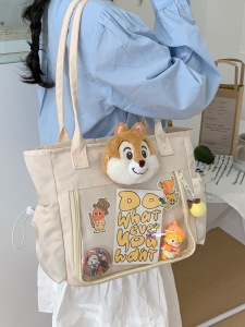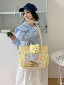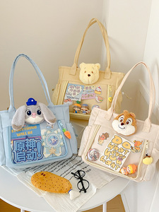 卡通小熊帆布痛包单肩斜挎包日系二次元初中女高颜值手拎可爱书袋