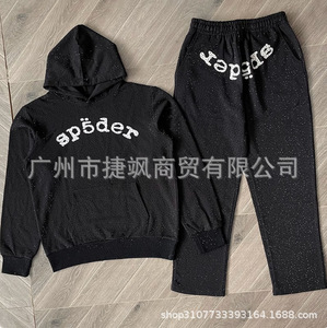 跨境专供高品质Sp5der全烫钻卫衣男女同款连帽衫卫衣