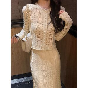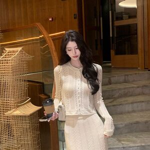 法式套装钩花镂空针织显开衫气质一整套两件套时尚新款半身裙