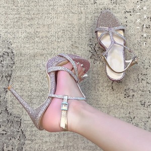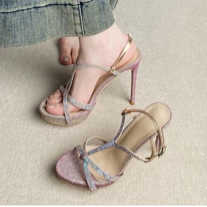 WO惠州市2025新款厚底高跟鞋欧美时尚水钻交叉带格利特人鱼姬细跟