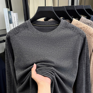 跨境外贸男士圆领毛衣休闲百搭中年打底针织衫男爸爸装线衣批发