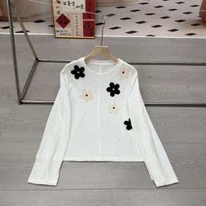 即墨厂家09030325女装2025早秋新品钩花圆领长袖T恤