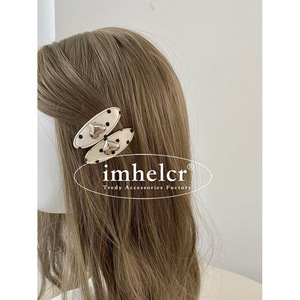 韩国欧尼同款椭圆波点格纹爱心发夹高级感时尚细闪侧边bb夹碎发夹