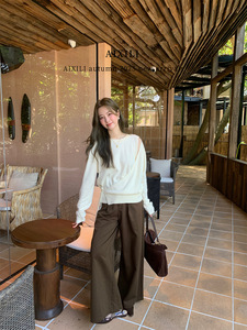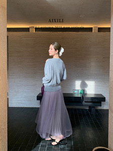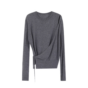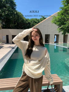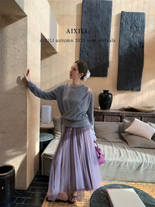 爱西里2025秋季气质简约高级感侧绑带假两件长袖毛衣15233