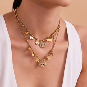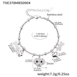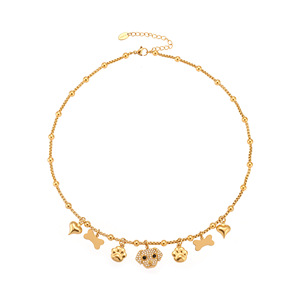 鑫艺鑫超闪5A锆石小狗满钻DIY多配件吊坠不锈钢材质项链手链套装