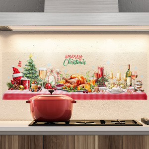 爱客JD3904圣诞节香槟烤鸡圣诞树玻璃贴 卧室窗贴节日装饰静电贴