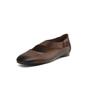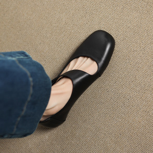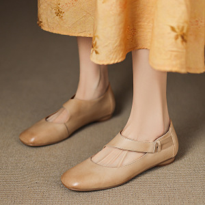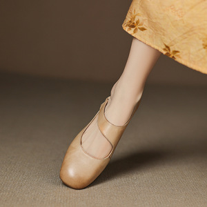 小众时尚ins温柔晩晩风复古新款玛丽珍真皮圆头浅口水洗牛皮单鞋