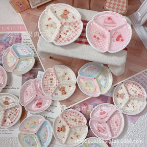 新款捏捏食玩餐盘仿真盘子圆形三格分餐盘娃娃屋diy手工树脂配件