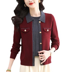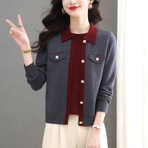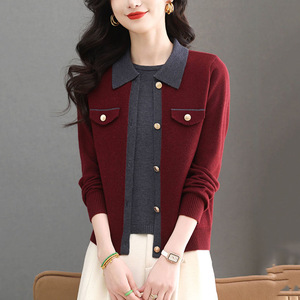 假两件开衫长袖针织衫女春秋季2025新款秋装撞色毛衣女士打底上衣