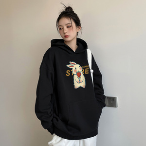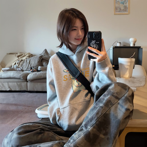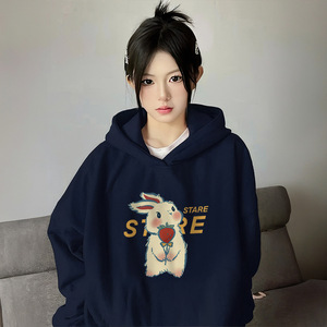 藏蓝色连帽卫衣女2025秋薄款新款宽松长袖冬季加绒加厚上衣外套
