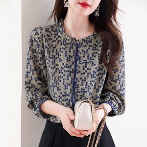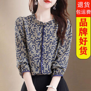 时尚漂亮洋气夫人妈妈长袖打底上衣女春秋装新款遮肚雪纺衬衫新品