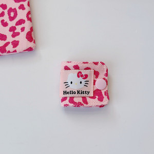 可爱KT豹纹牛仔布艺数据线收纳夹手作凯蒂充电线收纳包笔刷收纳