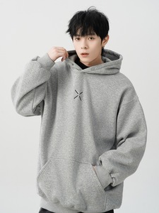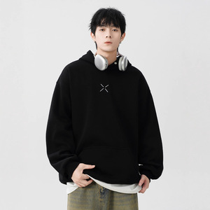 重磅小标印花连帽卫衣男女冬季2025新款潮牌加绒加厚宽松套头帽衫