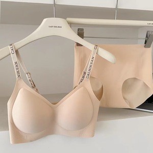 新款聚拢舒适无痕内衣女果冻条软支撑字母肩带反重力提拉文胸套装