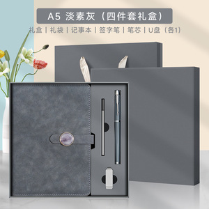 A5【淡素灰】4件套 (签字笔+笔芯+16gU盘)