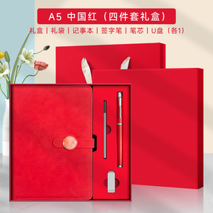 A5【中国红】4件套 (签字笔+笔芯+16gU盘)