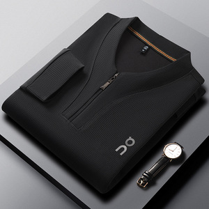 抖音爆款秋季新款POLO衫男士长袖纯色圆领中年宽松潮流体恤男装
