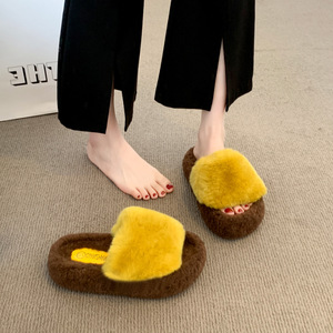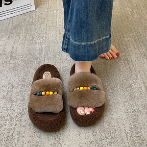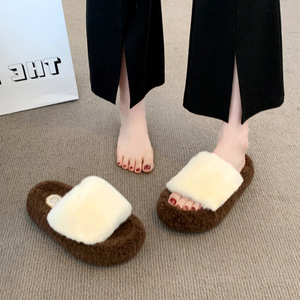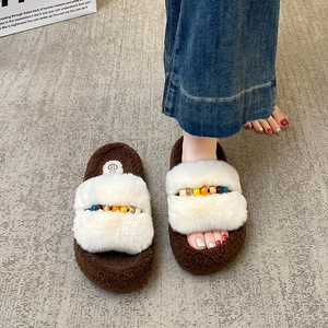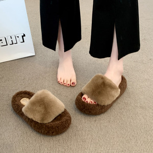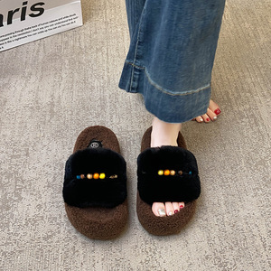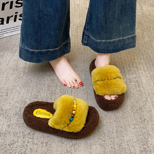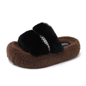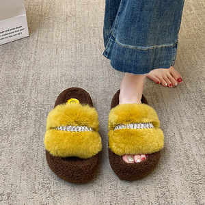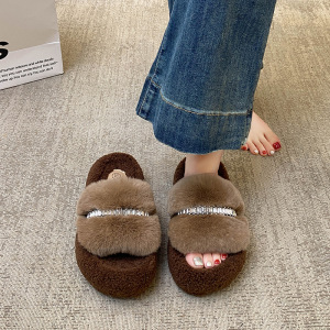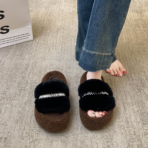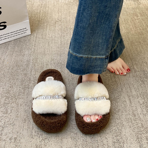 毛毛拖鞋女外穿2025年新款秋冬网红时尚百搭水钻厚底加绒一字棉拖
