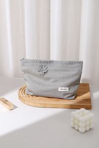小清新四叶草格子化妆包便携护肤品收纳袋旅行内胆包手拿洗漱包