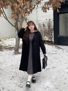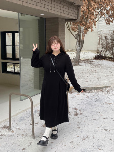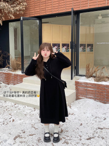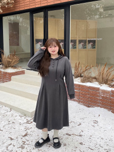 60225#辣条大码 显瘦BI入 秋冬胖mm巨显瘦百搭连帽磨毛卫衣裙裙子