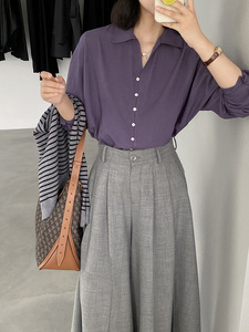 江左 韩系长袖贝壳扣纯色女式衬衫女2025设计感气质叠穿衬衣 6339