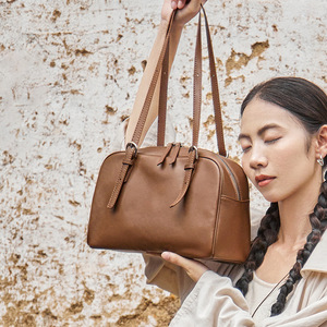 慵懒风植鞣皮保龄球包2025新款肩带可调节休闲大容量真皮手提包女