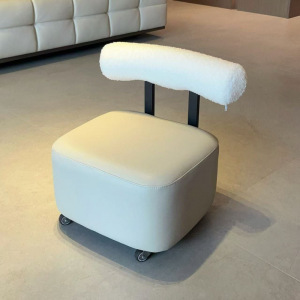 轻奢中古风复古溜溜凳换鞋凳小凳皮质免360°旋转静音