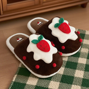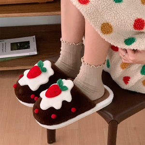 室内可爱草莓蛋糕舒适棉拖鞋保暖少女心冬季新款包头毛毛拖鞋女士