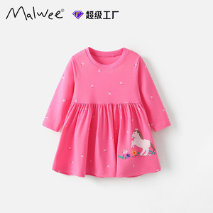 跨境malwee女童连衣裙秋冬新款欧美中小童圆领长袖可爱女孩公主裙