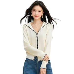 白色针织衫女2025新款女装气质显瘦轻熟风修身长袖针织小外套6982