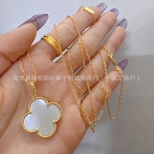 铜镀金高版本四叶草长项链90CM毛衣链吊坠梵家抖音直播不掉色