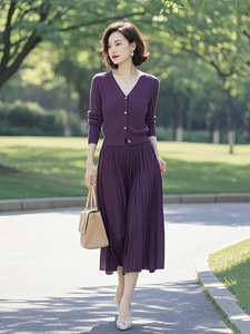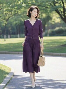 气质针织开衫百褶半身裙两件套装连衣裙子收腰显瘦2025春秋装新款