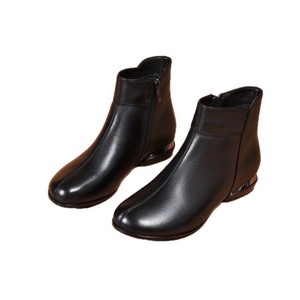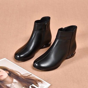 粗跟软皮时装靴女秋冬款2025新款低跟妈妈靴子软底加绒保暖皮靴女
